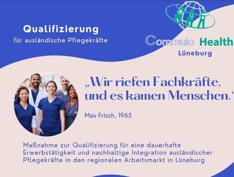 Ab 01.2023 planen wir den Start des Projekts Commuio HEALTH Lüneburg: Qualifizierungsmaßnahme zur Fachkräftesicherung für ausländische Pflegekräfte in der Region Lüneburg.